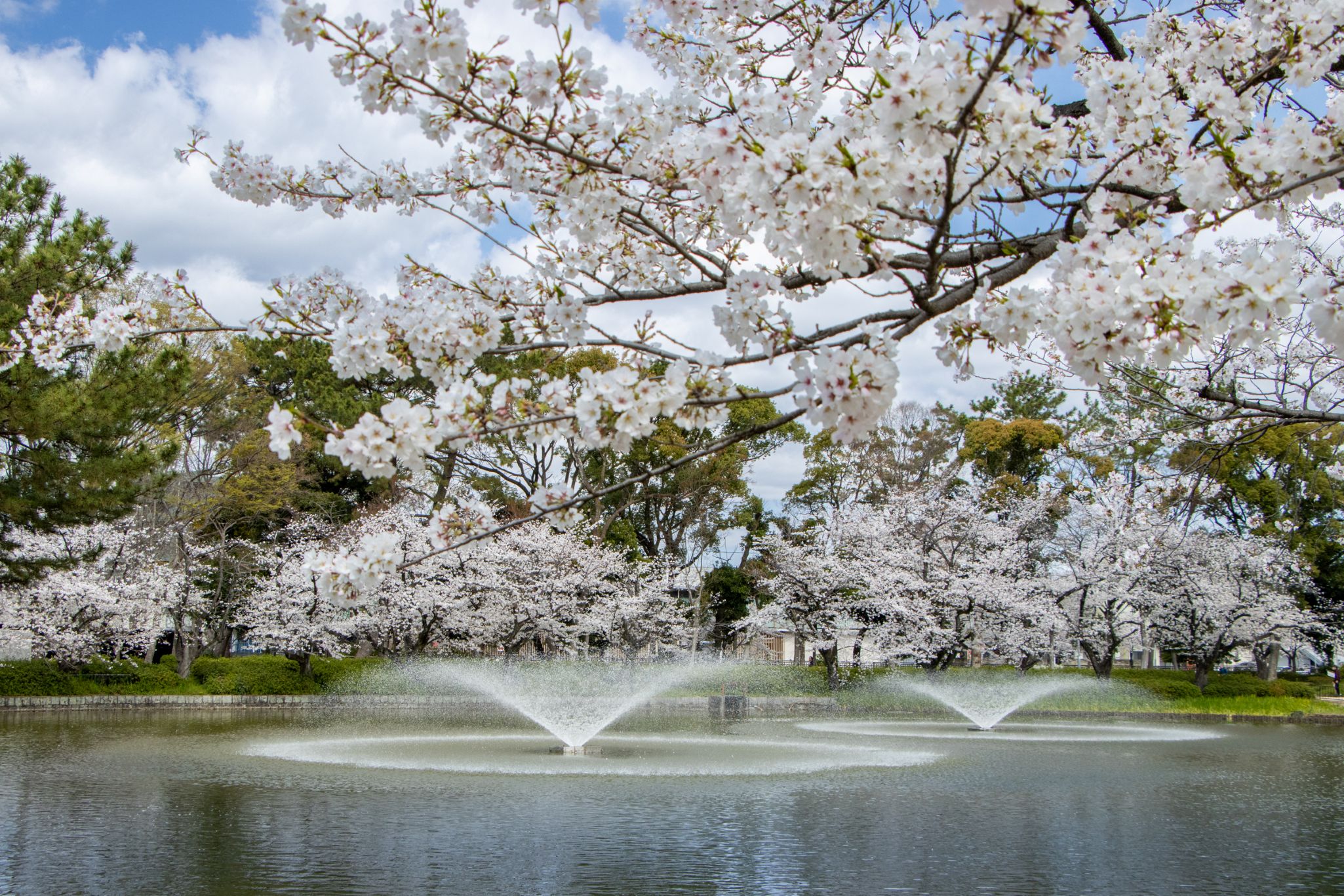 名城公園「噴水と桜」