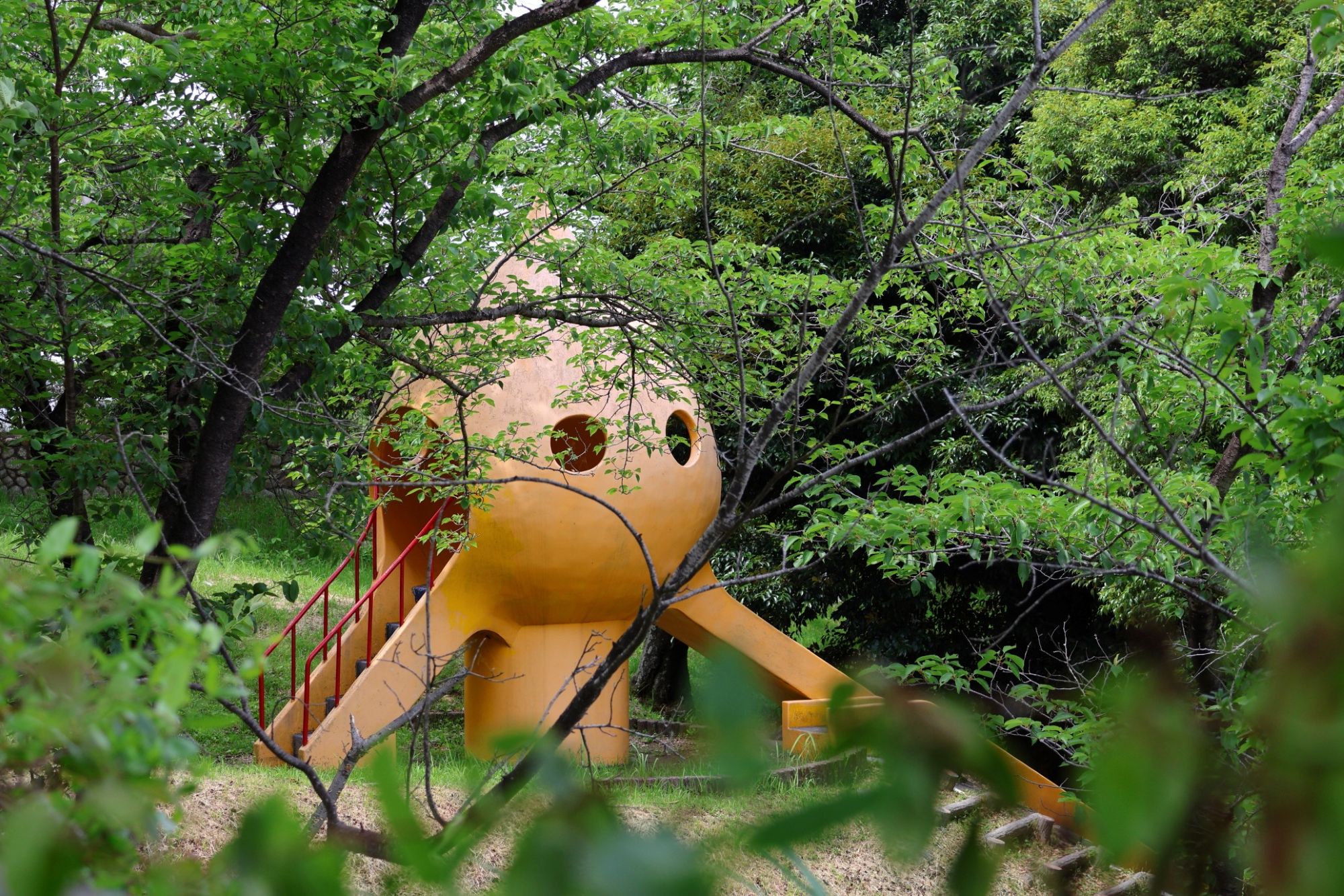 撮影者コメント:公園を散策していると、木々の合間に滑り台がありました。まるで宇宙人のようでした。