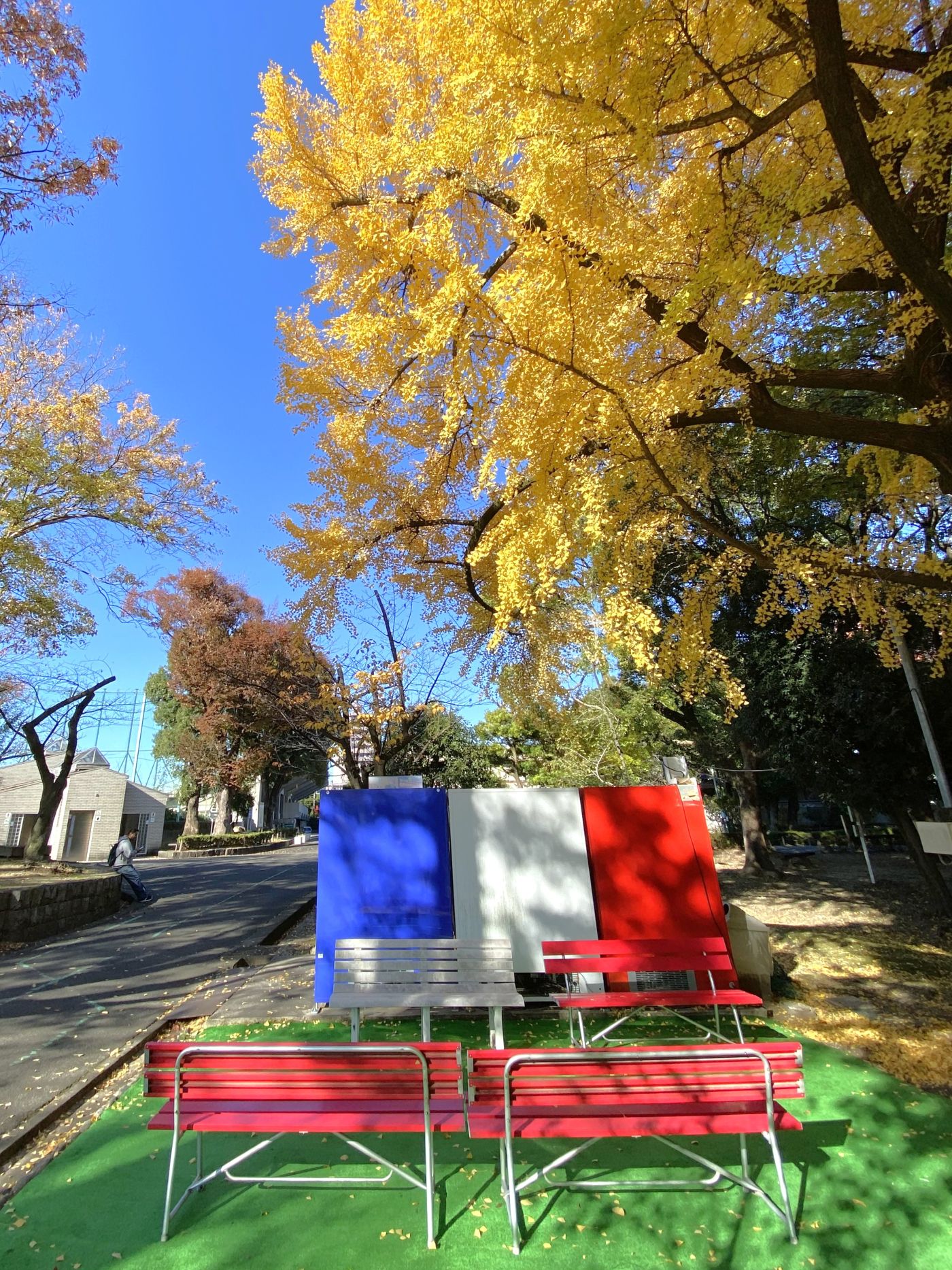 撮影者コメント:この公園には大きいイチョウの木がたくさんあります。遠くからも黄色い葉っぱが見えて、とても綺麗です。思わず車を駐車場に停めて公園を散策しました。